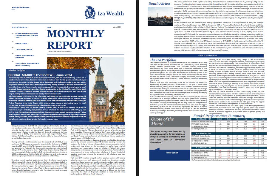 The Iza Global Balanced and Iza Global Equity Funds’ strategic positioning allows them to benefit from both large-cap growth stocks and sectors poised for recovery. This ensures that they can continue to deliver strong returns to investors, supported by a prudent blend of growth, quality, and value investments.